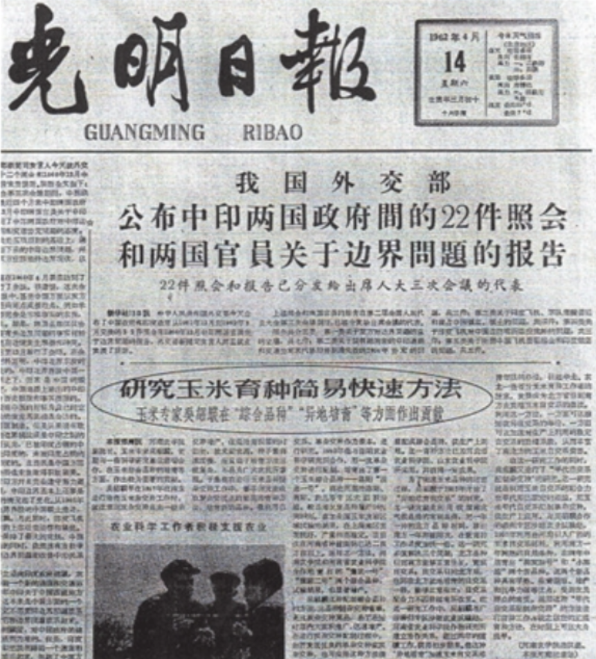 ●1962年4月,《光明日报》在头版显著位置进行专题报道。异地培育迅速从育种业内部传播到全社会,很快成为加速育种速度的首选方法。